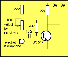 1-2v) from the 0.6v base voltage. A good electret microphone can hear a