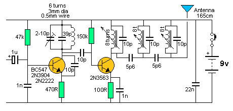 L3 - 7 turns of 24 SWG wire close wound with 4mm diameter air core.