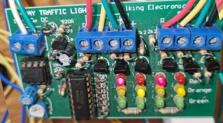 has CROSSING LIGHTS sockets and comes with 2 LEDs for demonstration