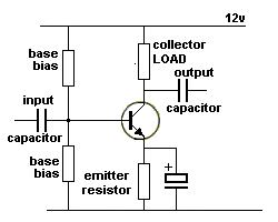The self-biased transistor is an amplifier stage consisting of a transistor, base bias resistor, load resistor input capacitor and output capacitor. It is called a STAGE because it has its own input and output capacitor and its own biasing. The capacitors prevent any DC biasing on one stage from affecting the biasing of another stage. In other words, this stage is self-contained. |