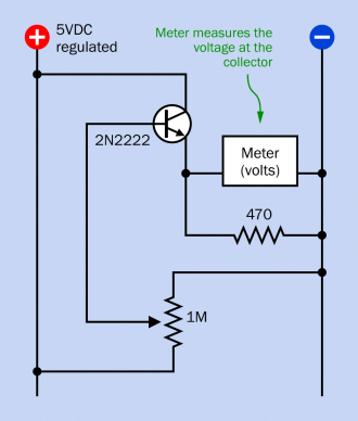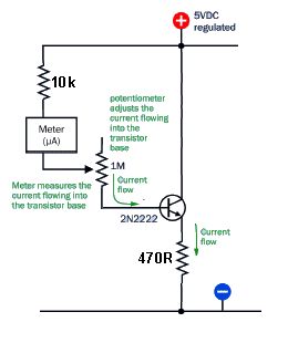 drop across the 1k resistor and finally a base-to-emitter drop of 0.7v.