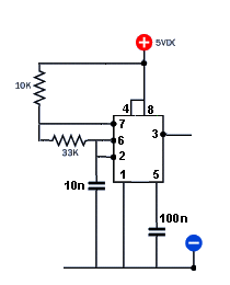 220R, clear-up the crossing wires and re-draw the 555 so it is understandable.