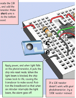 “the current goes in the long lead of a photo-transistor” is one absurd