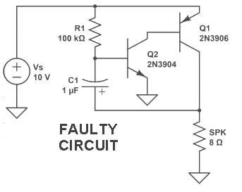 Then it connects two transistors together DIRECTLY or via a capacitor to produce