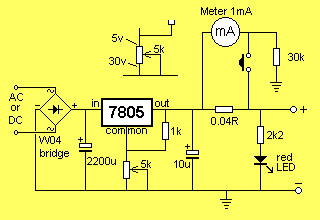 supply. In the diagram below, it is added to a 7805 3-terminal regulator.