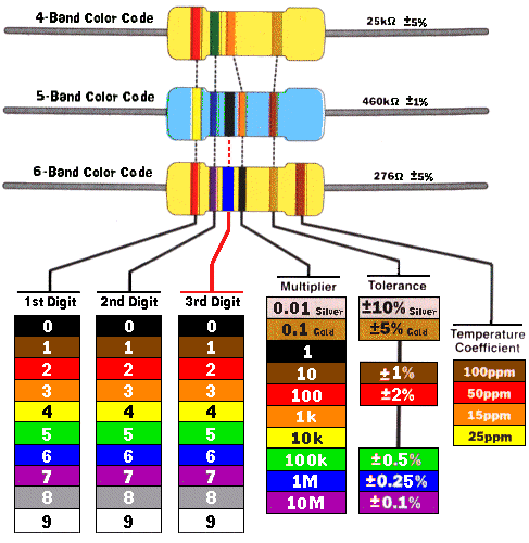 We have included 4 different colour codes for resistors. They are all the