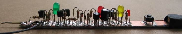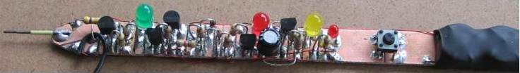 The 5 button cells are fitted to the board with fine tinned copper wire.