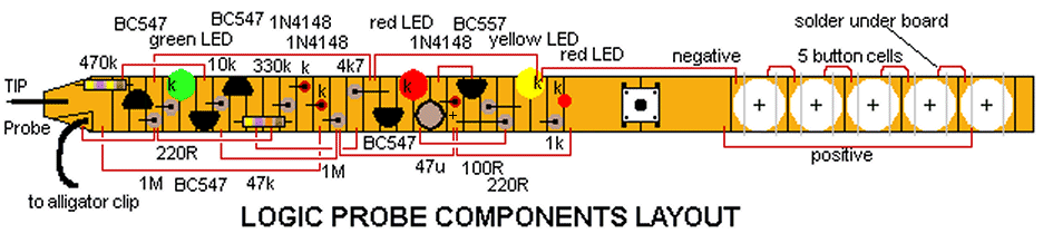 illuminated. Connect the probe tip to the 6v rail of the project with a