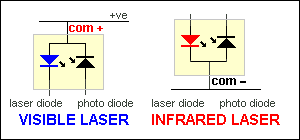 case is then taken to the NEGATIVE of the supply. On MOST visible laser diodes the case is