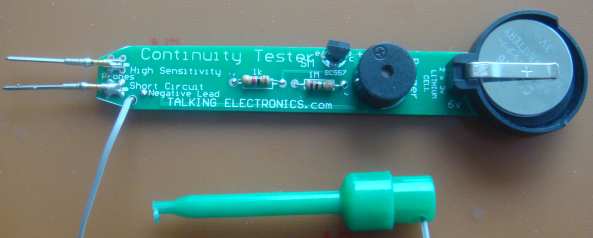 When everything has been soldered in place, touch the two probes together and the