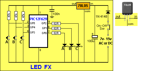 This project uses about 400 instructions to produce the effects and it uses the EEPROM to store the sequence