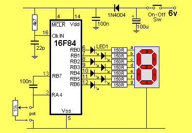 Even though the PIC LAB-1 board has only a single display, a 3-digit counter can