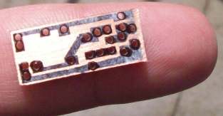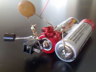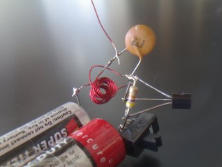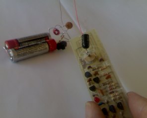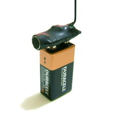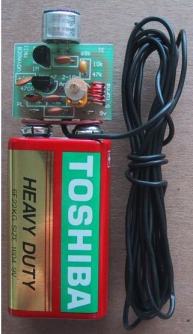 Here is a "knock-off" of our older design. It is mounted flat on a 9v battery: