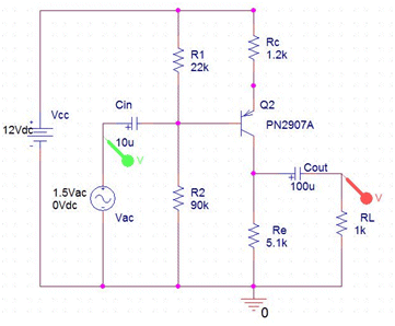 This circuit is no different to an NPN stage. The 100u is pulled UP by