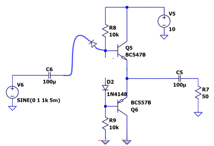 The transistor "pulls down" to deliver the negative half-cycle but the