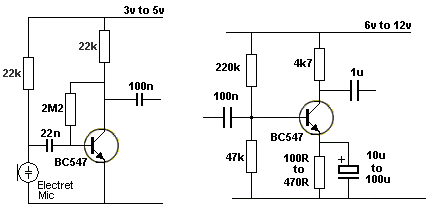 The second circuit can be used with a signal from 1mV to say 100mV and a